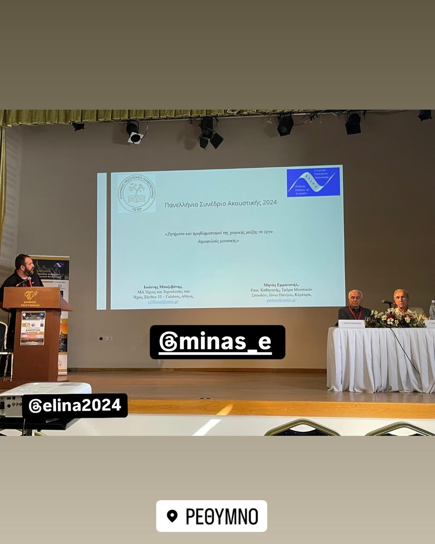 Studio and classroom practical and theoretical work and study at the Technical Educational Institute of Crete, Department of Music Technology and Acoustics Engineering